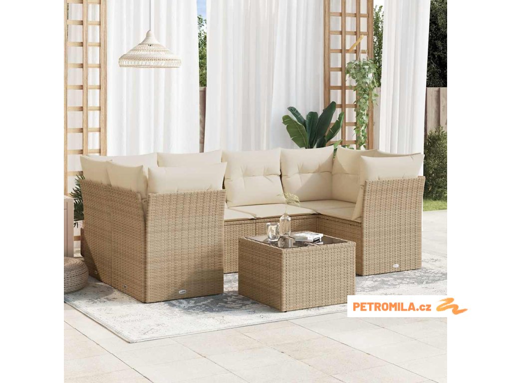 7dílná zahradní sedací souprava s poduškami béžová polyratan
