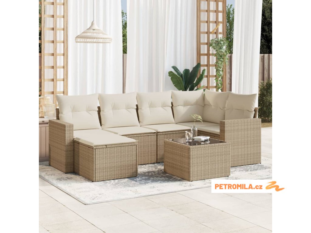 7dílná zahradní sedací souprava s poduškami béžová polyratan