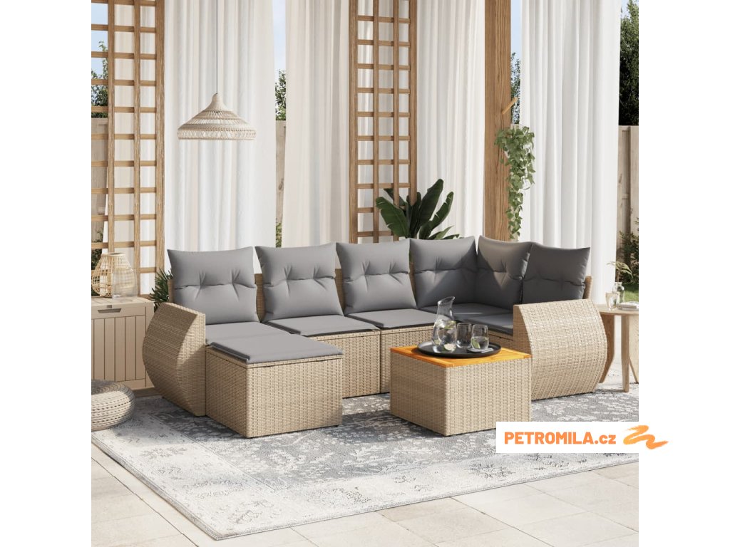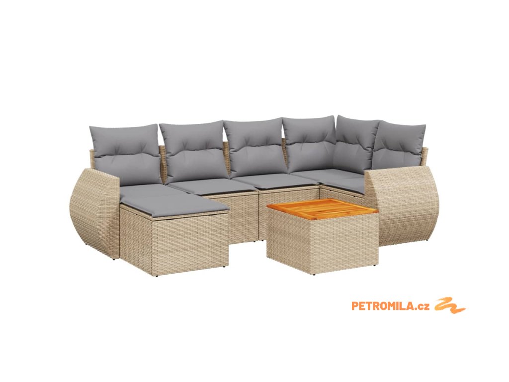 7dílná zahradní sedací souprava s poduškami béžová polyratan
