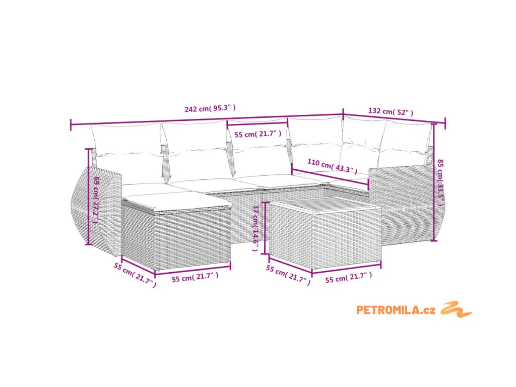 Sada zahradních pohovek s polštářem 7 pcs Hnědá Poly ratan