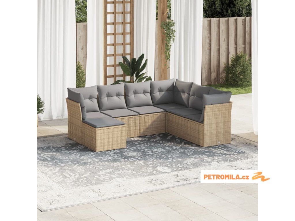 7dílná zahradní sedací souprava s poduškami béžová polyratan