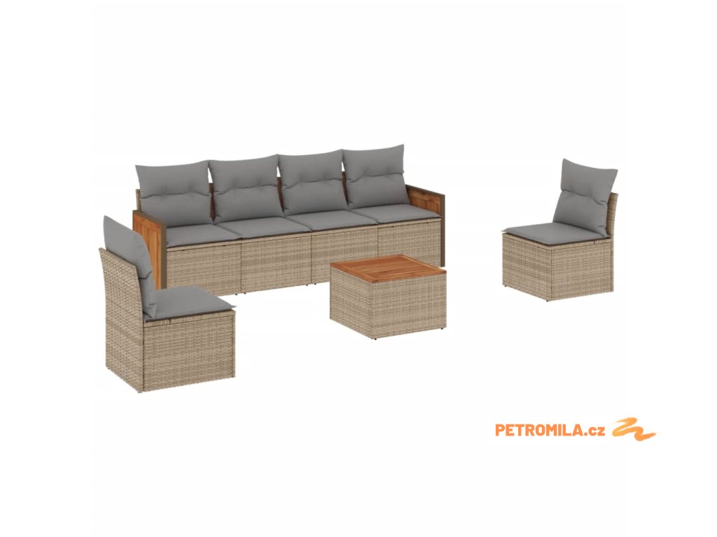 7dílná zahradní sedací souprava s poduškami béžová polyratan