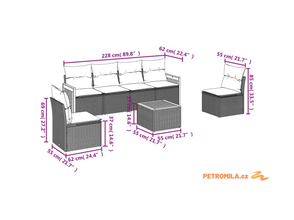 Tato zahradní sedací souprava je dokonalým doplňkem vaší zahrady, terasy nebo dvorku a poskytne vám pohodlné a příjemné místo, kde si můžete povídat s rodinou a přáteli nebo jen tak odpočívat a užívat si pobyt venku.