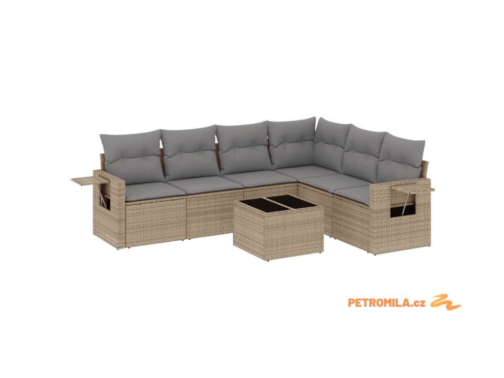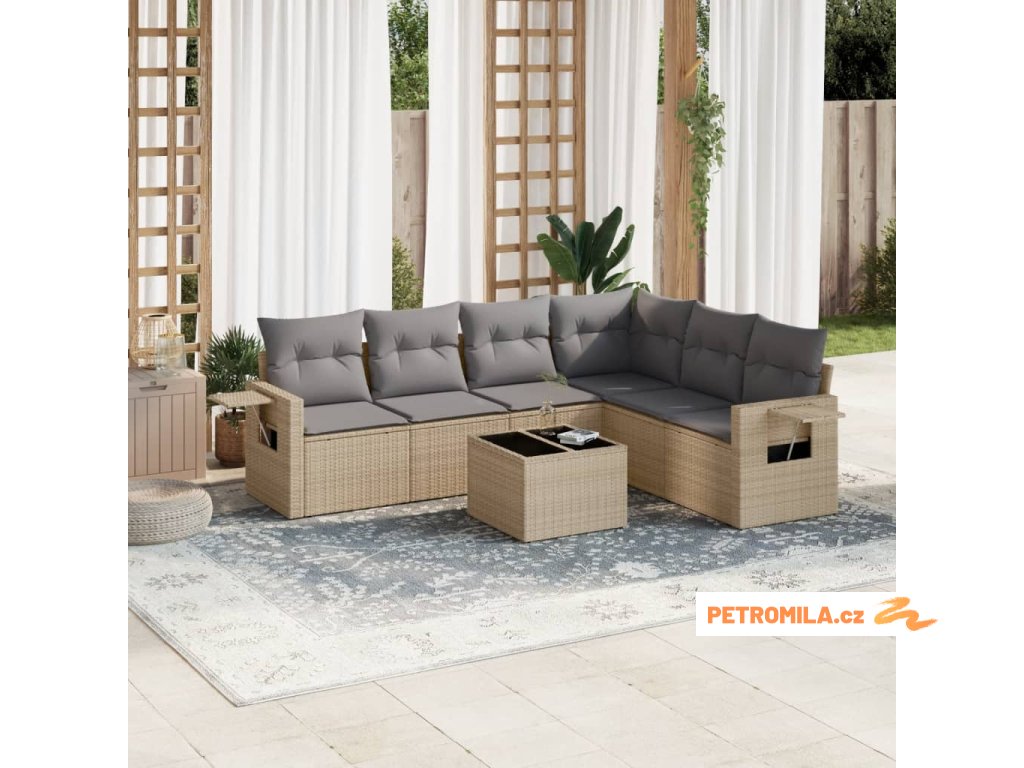 7dílná zahradní sedací souprava s poduškami béžová polyratan