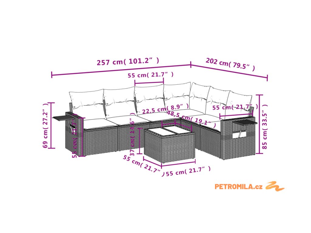 Sada zahradních pohovek s úložištěm 11 pcs Šedá Poly ratan