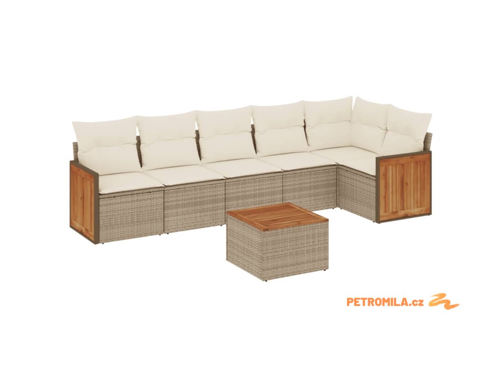 Sada zahradních pohovek s polštářem 7 pcs Béžová Poly ratan