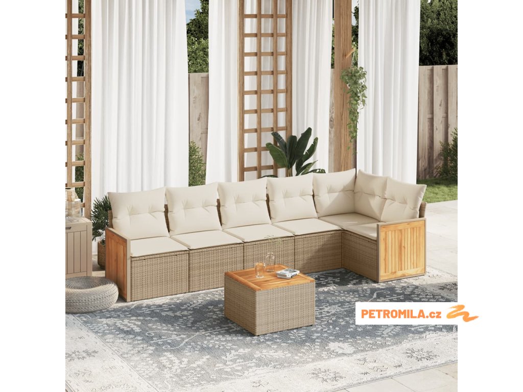 7dílná zahradní sedací souprava s poduškami béžová polyratan
