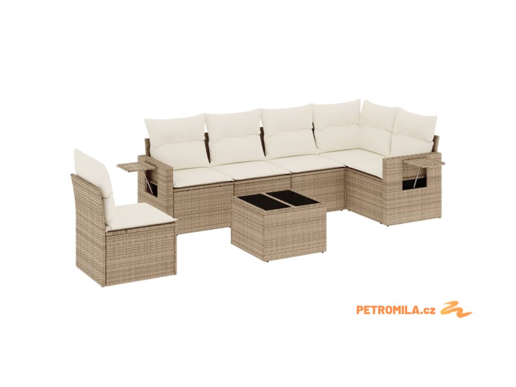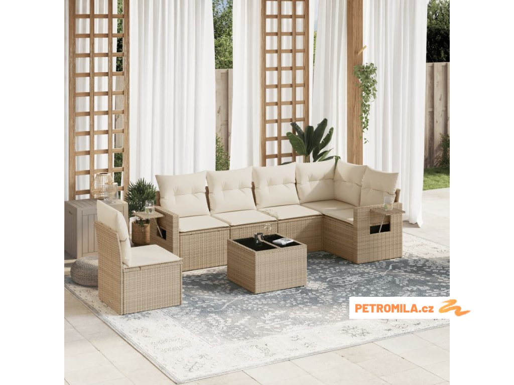 7dílná zahradní sedací souprava s poduškami béžová polyratan