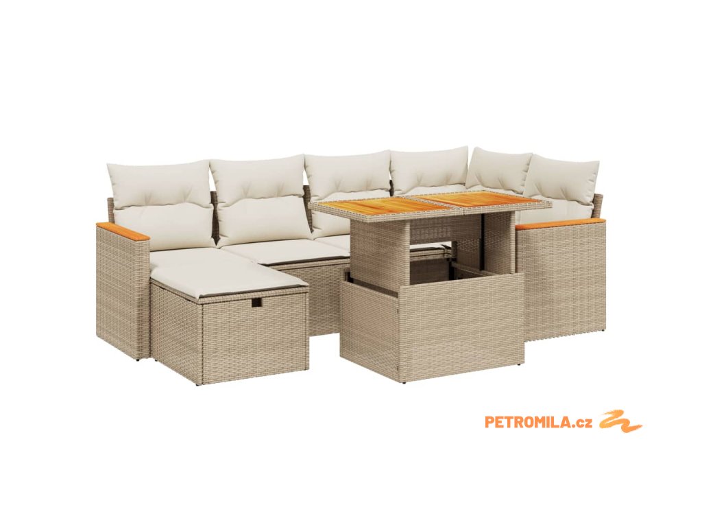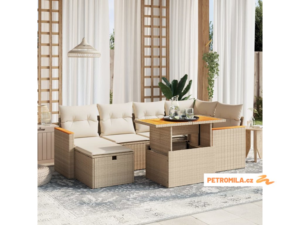 7dílná zahradní sedací souprava s poduškami béžová polyratan
