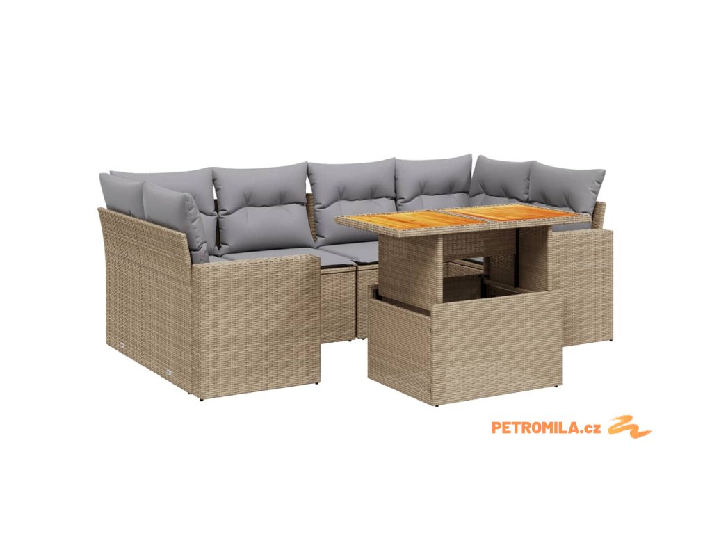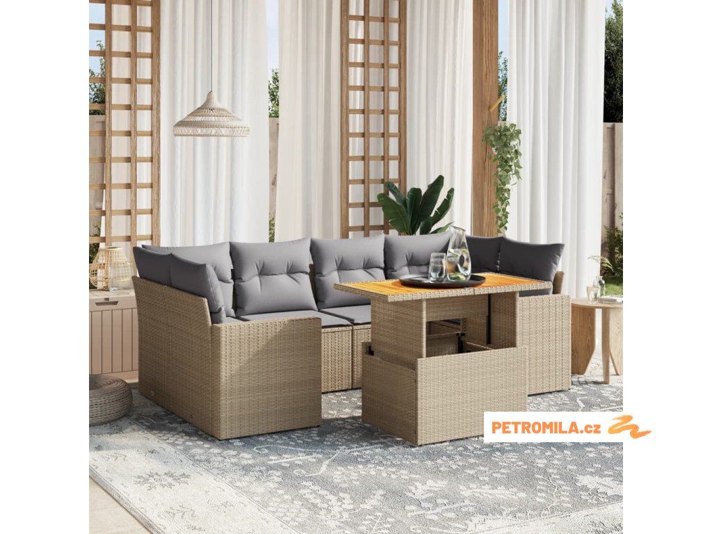 7dílná zahradní sedací souprava s poduškami béžová polyratan