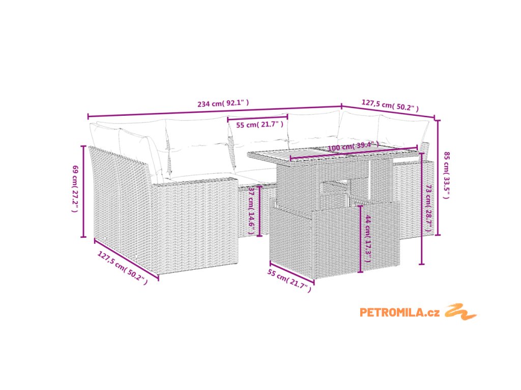 Sada zahradních pohovek s polštářem 7 pcs Hnědá Poly ratan