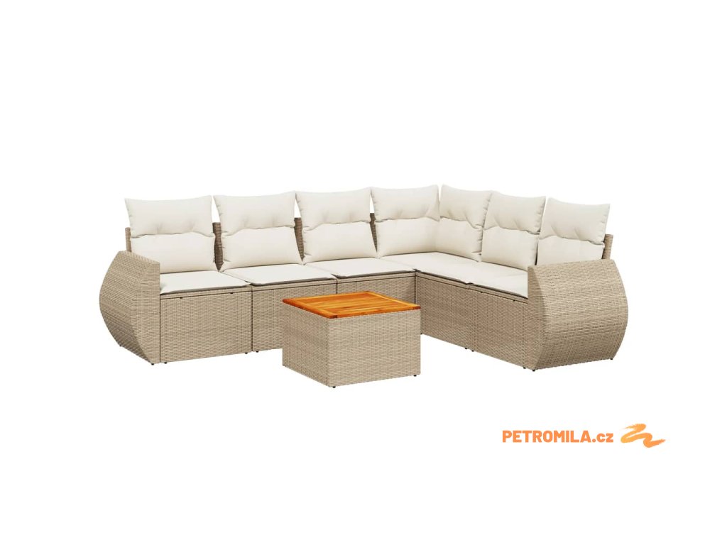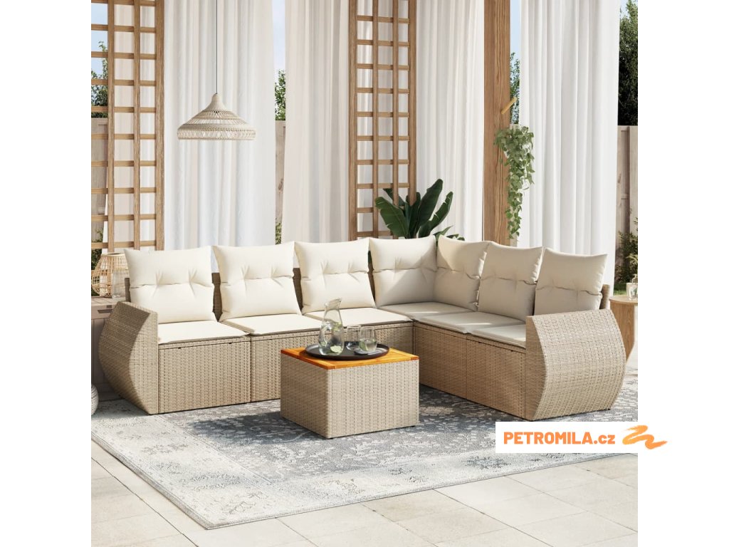 7dílná zahradní sedací souprava s poduškami béžová polyratan