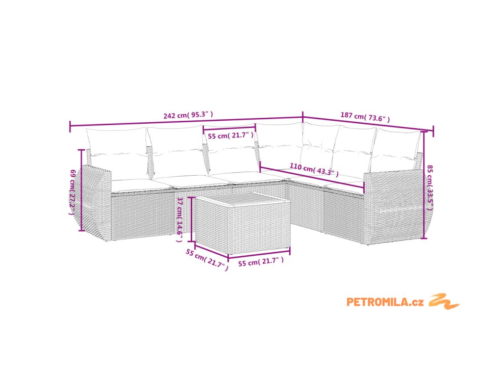 Tato zahradní sedací souprava je dokonalým doplňkem vaší zahrady, terasy nebo dvorku a poskytne vám pohodlné a příjemné místo, kde si můžete povídat s rodinou a přáteli nebo jen tak odpočívat a užívat si pobyt venku.