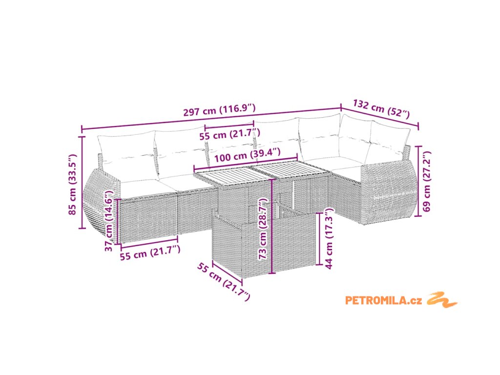 - Modulární design: Tato sada venkovního nábytku se vyznačuje modulární konstrukcí, je tedy zcela flexibilní a lze ji snadno přemisťovat, takže si můžete uspořádat venkovní nábytek dle vašich potřeb.