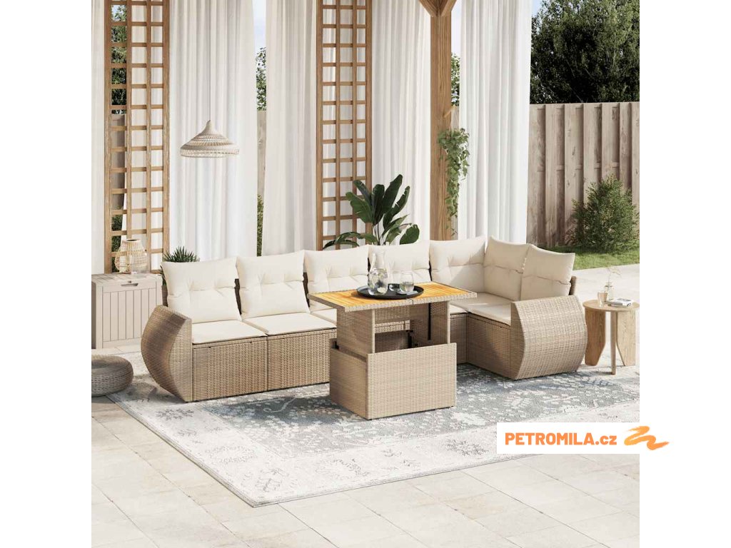 7dílná zahradní sedací souprava s poduškami béžová polyratan