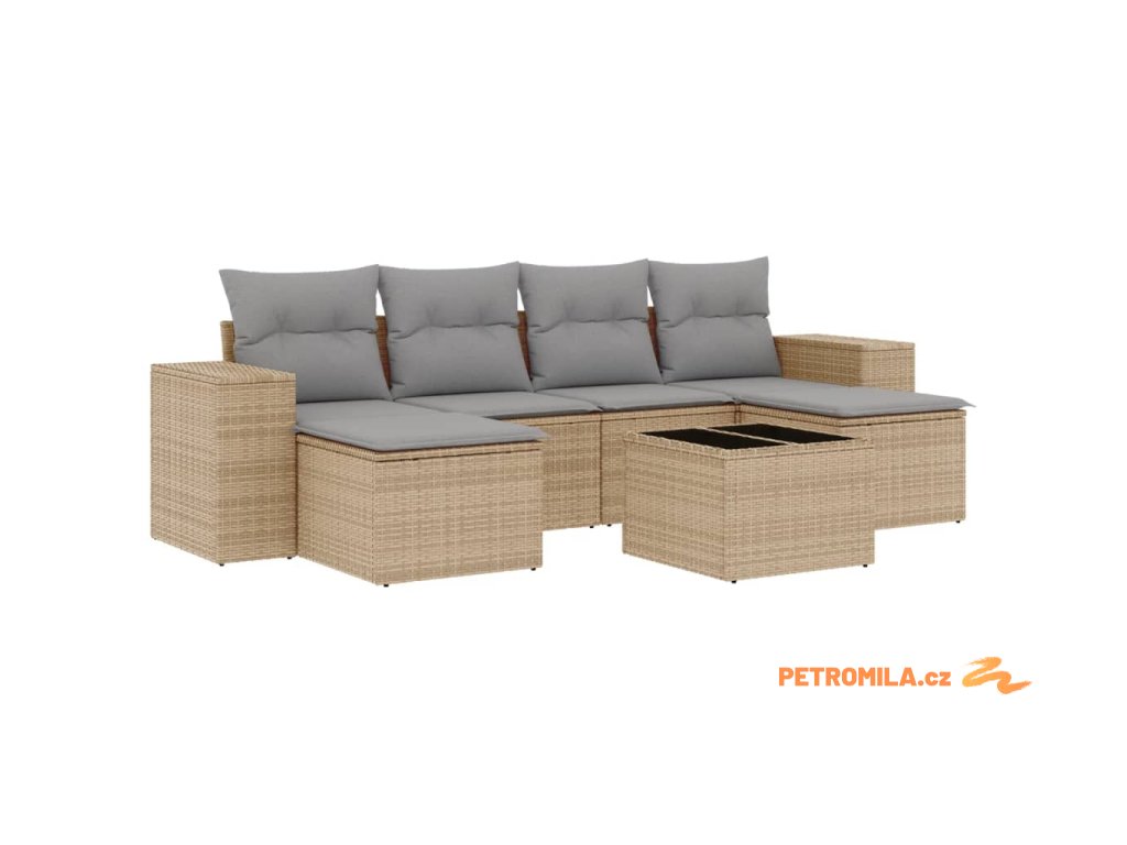 7dílná zahradní sedací souprava s poduškami béžová polyratan
