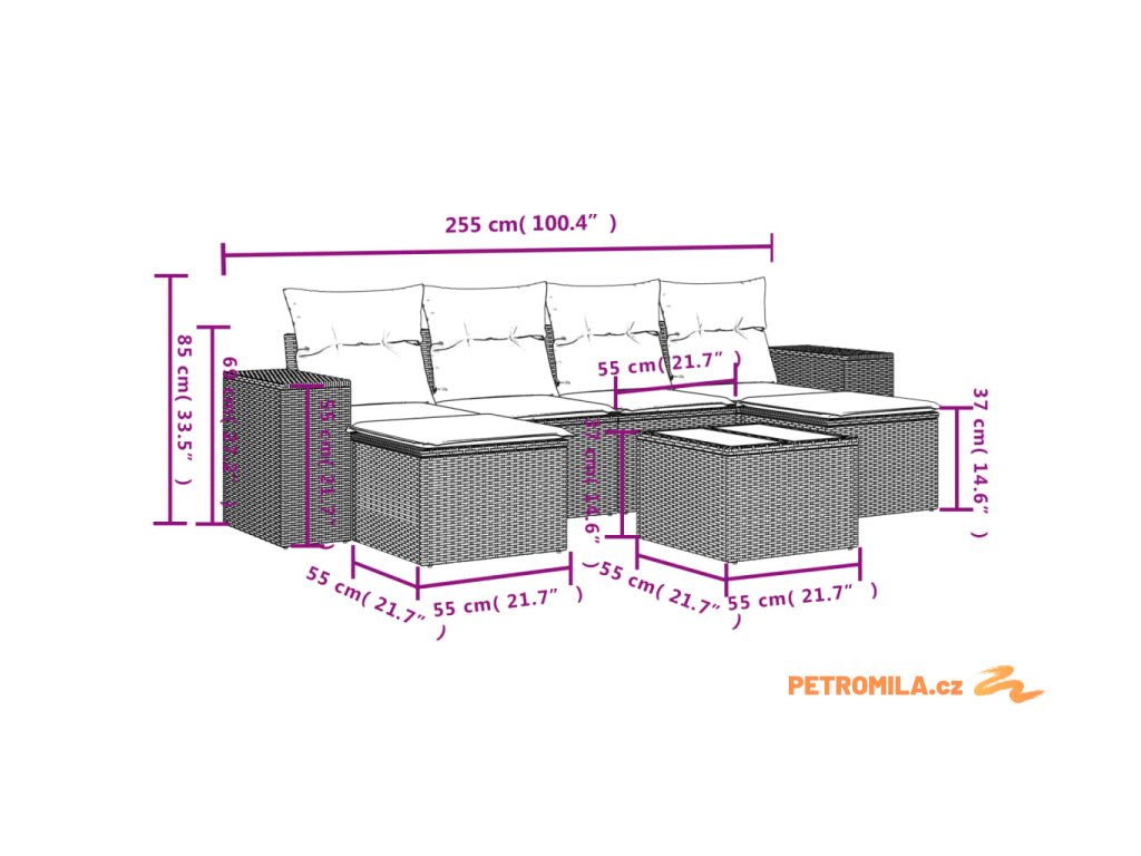 Sada zahradních pohovek s polštářem 8 pcs Béžová Poly ratan