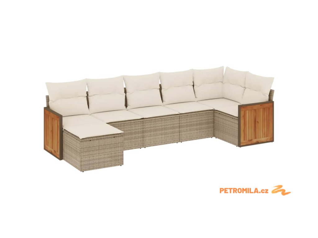 7dílná zahradní sedací souprava s poduškami béžová polyratan