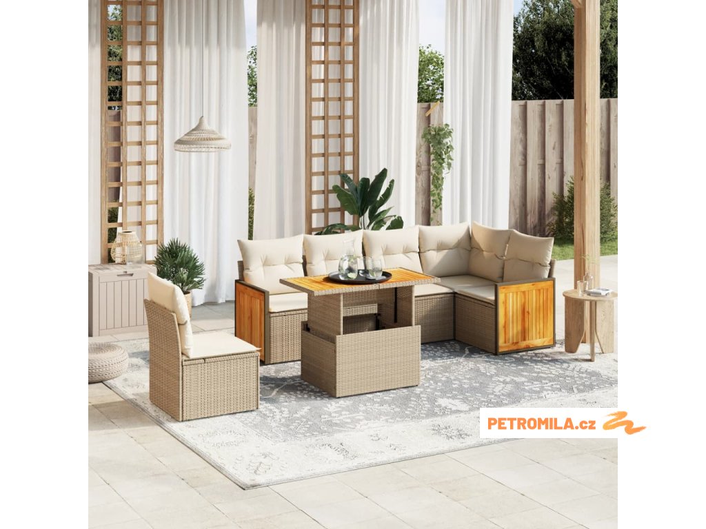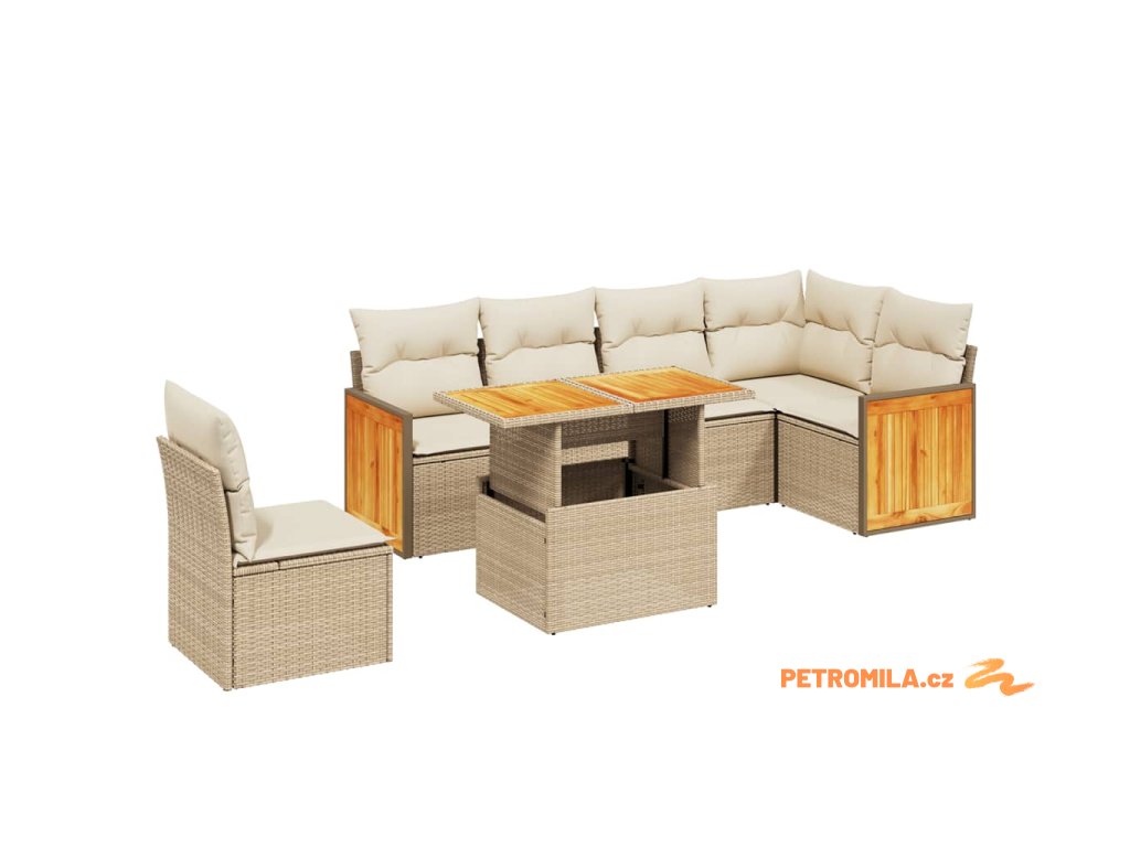 7dílná zahradní sedací souprava s poduškami béžová polyratan