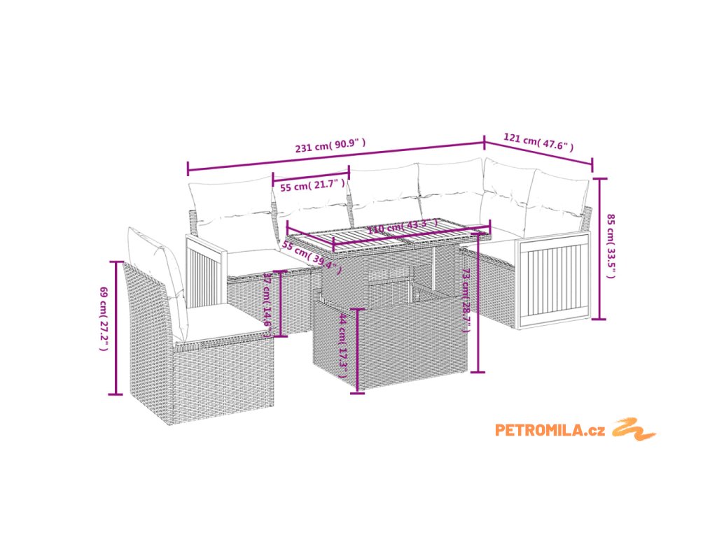 Sada zahradních pohovek s polštářem 7 pcs Hnědá Poly ratan