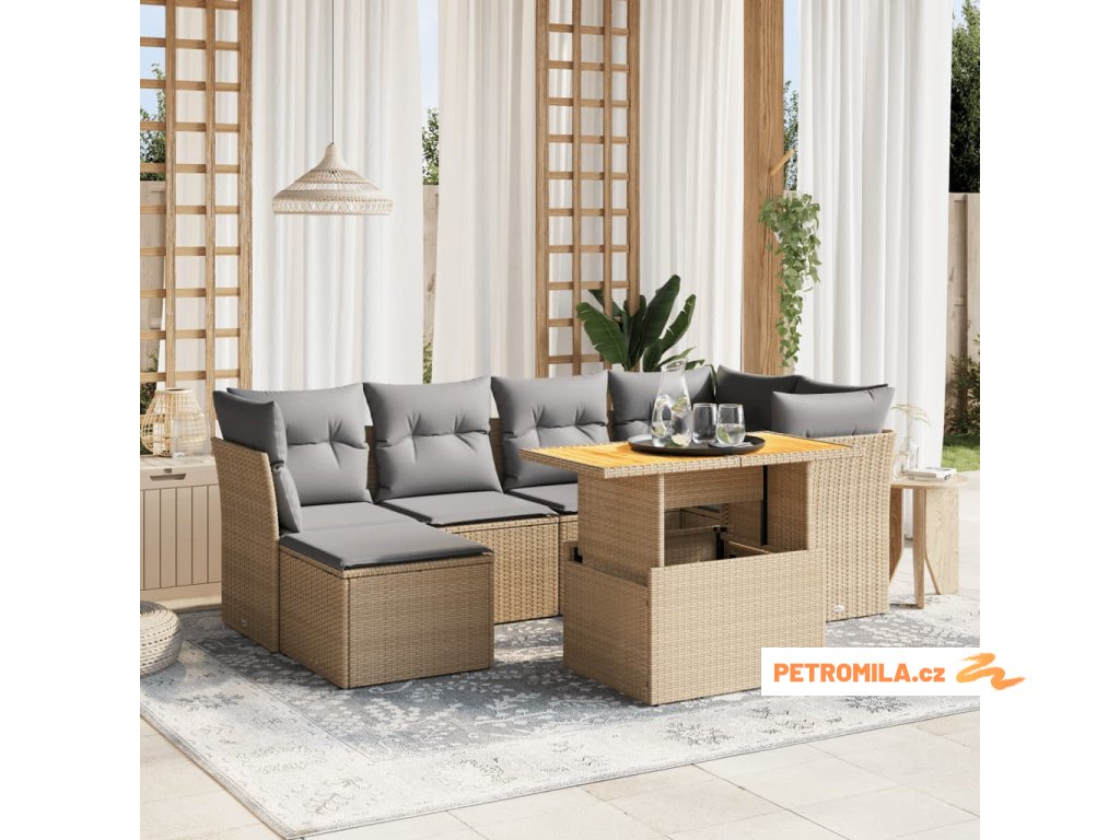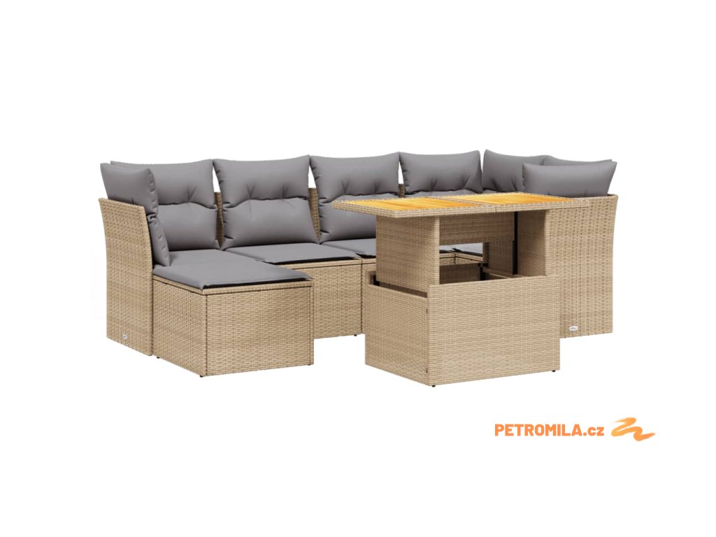 7dílná zahradní sedací souprava s poduškami béžová polyratan