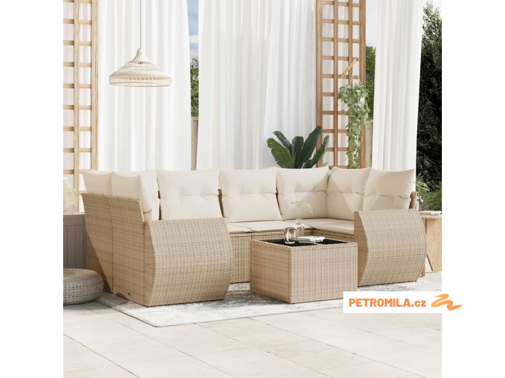 7dílná zahradní sedací souprava s poduškami béžová polyratan