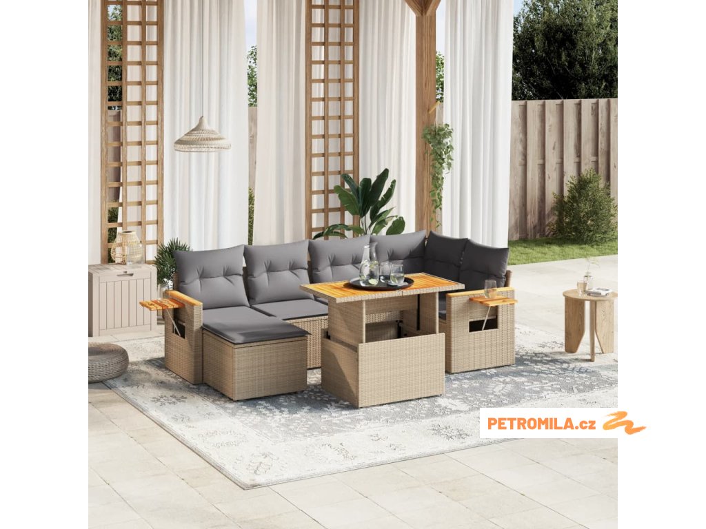 7dílný zahradní jídelní set s poduškami béžový polyratan