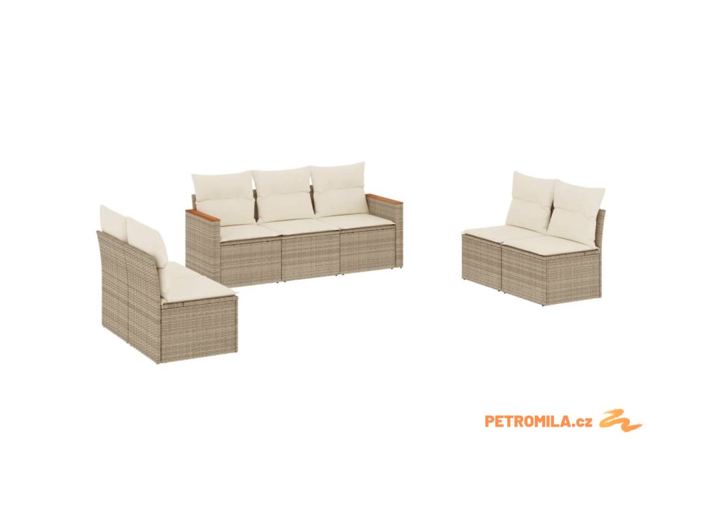 Sada zahradních pohovek s polštářem 6 pcs Béžová Poly Ratan