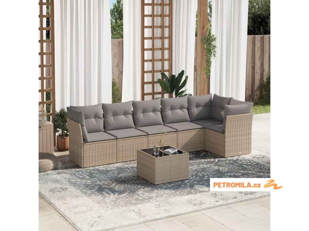 7dílná zahradní sedací souprava s poduškami béžová polyratan