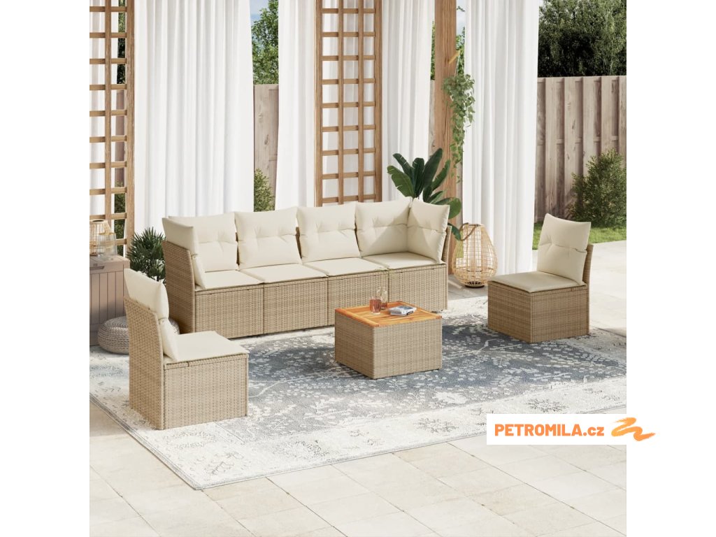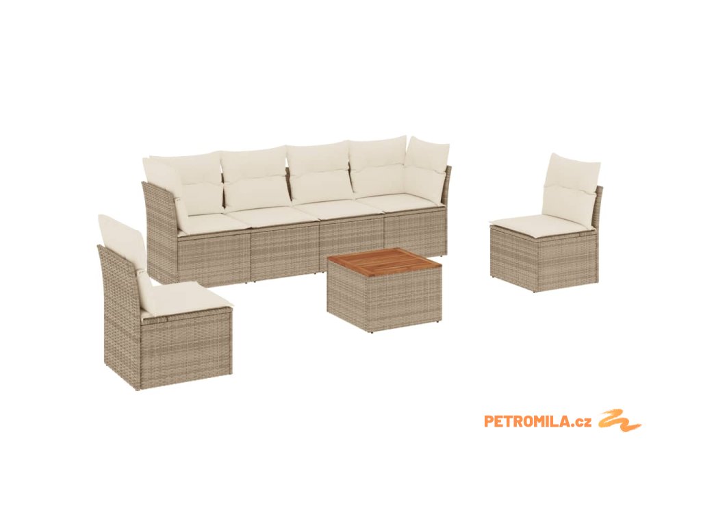 7dílná zahradní sedací souprava s poduškami béžová polyratan