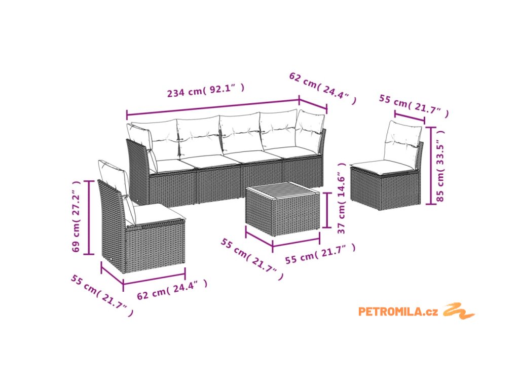 Tato zahradní sedací souprava je dokonalým doplňkem vaší zahrady, terasy nebo dvorku a poskytne vám pohodlné a příjemné místo, kde si můžete povídat s rodinou a přáteli nebo jen tak odpočívat a užívat si pobyt venku.