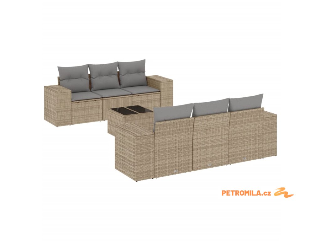 7dílná zahradní sedací souprava s poduškami béžová polyratan