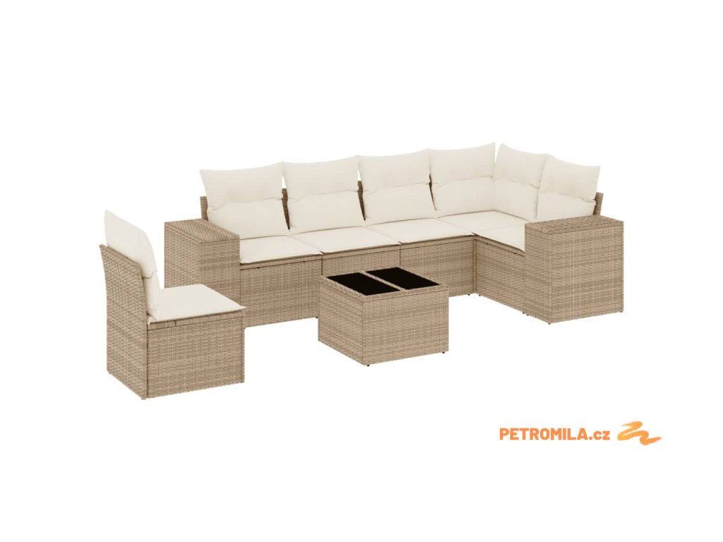 Sada zahradních pohovek s polštářem 7 pcs Béžová Poly ratan