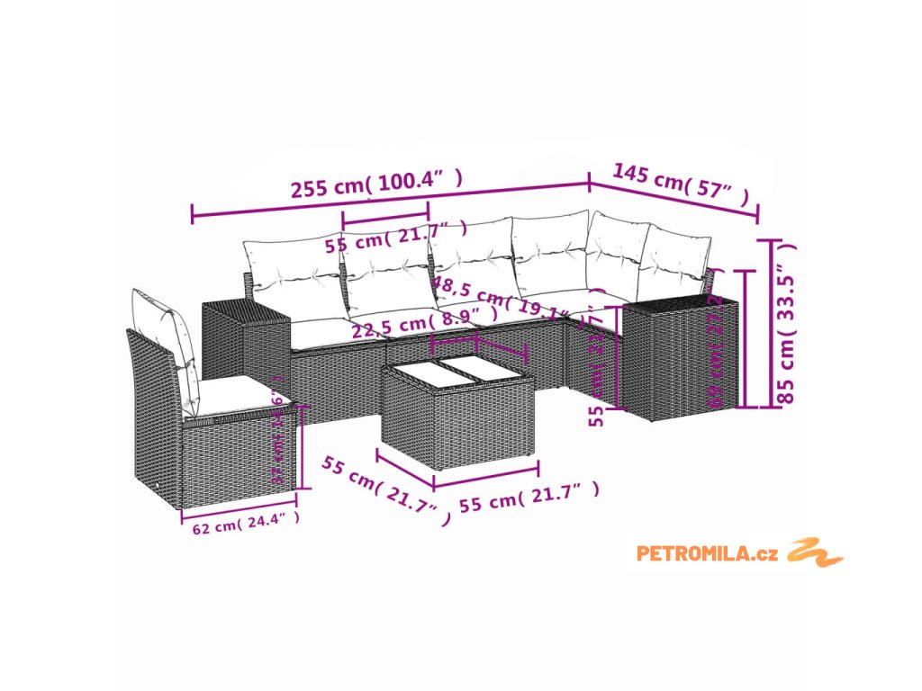 Sada zahradních pohovek s polštářem 8 pcs Šedá Poly ratan