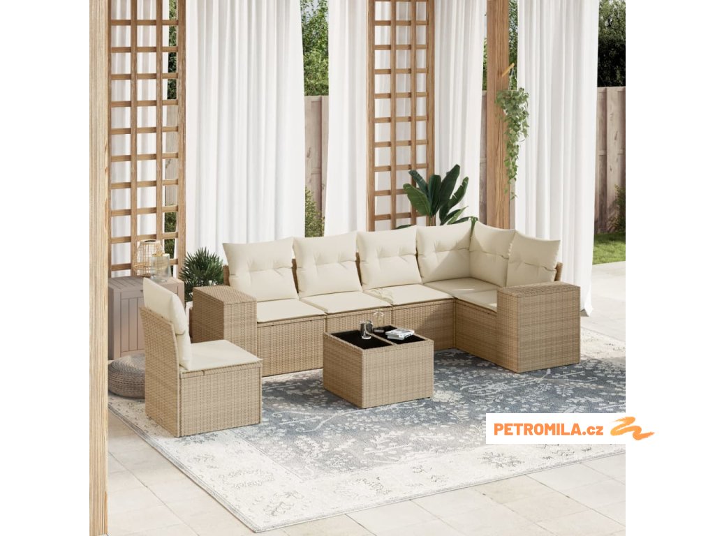 7dílná zahradní sedací souprava s poduškami béžová polyratan