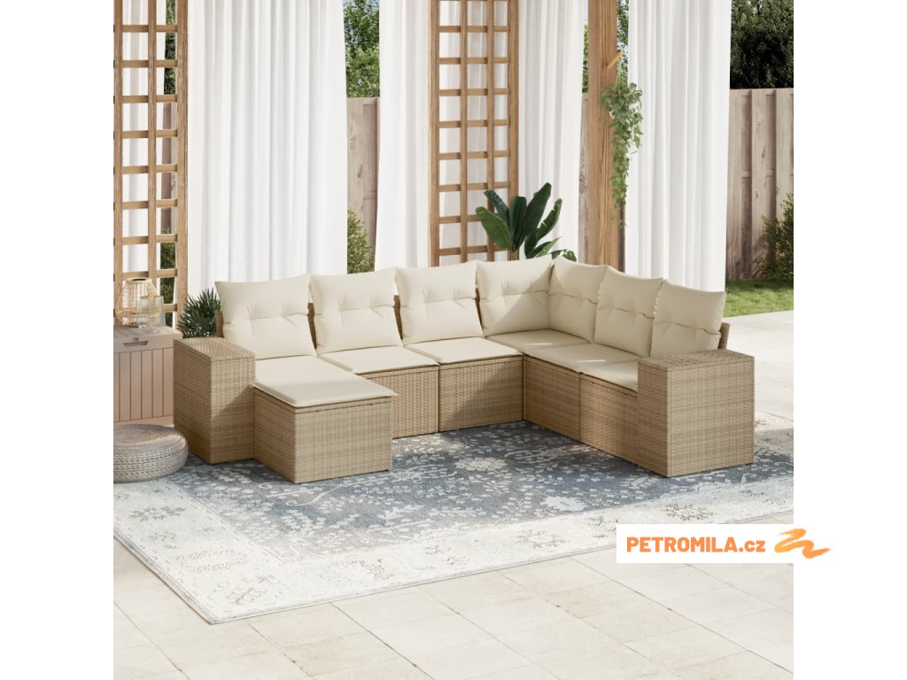 7dílná zahradní sedací souprava s poduškami béžová polyratan
