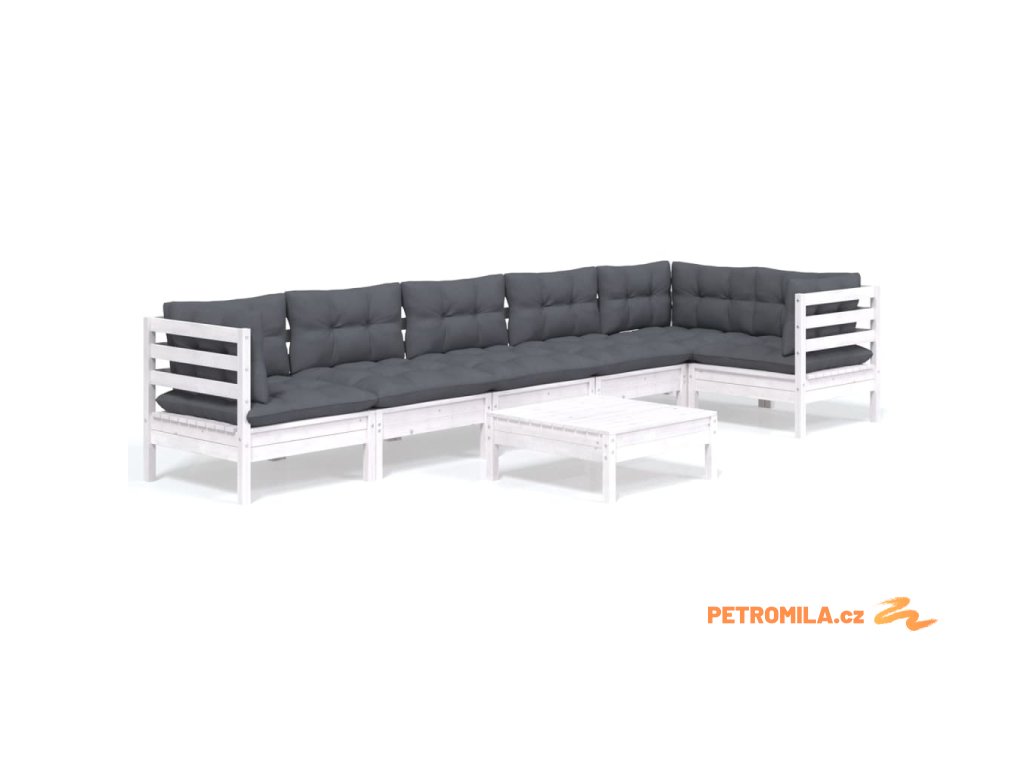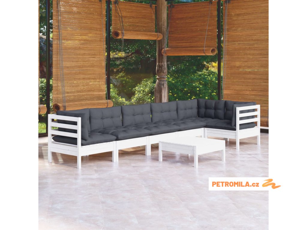 7dílná zahradní sedací souprava s poduškami bílá borovice