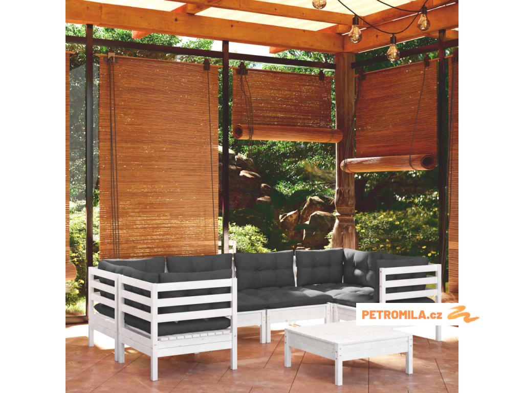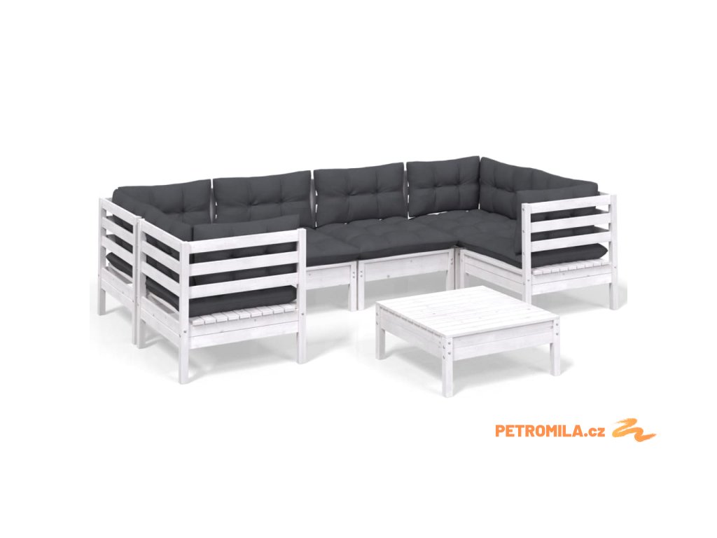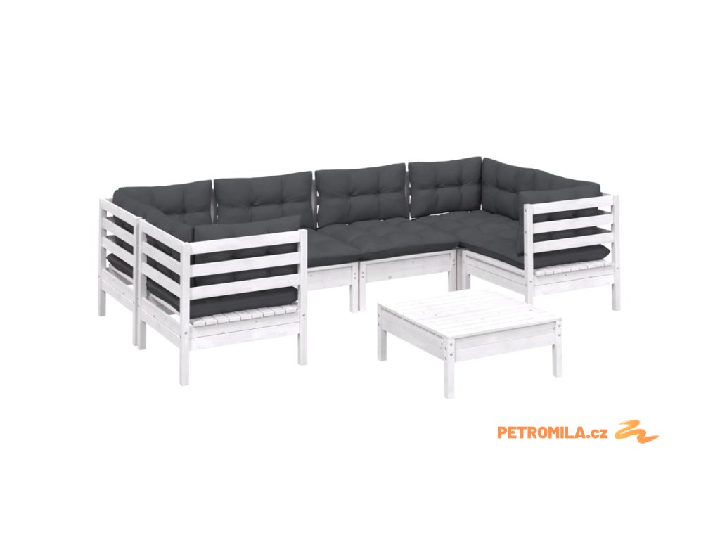 7dílná zahradní sedací souprava s poduškami bílá borovice