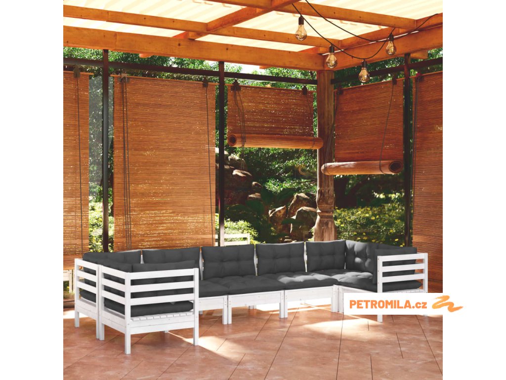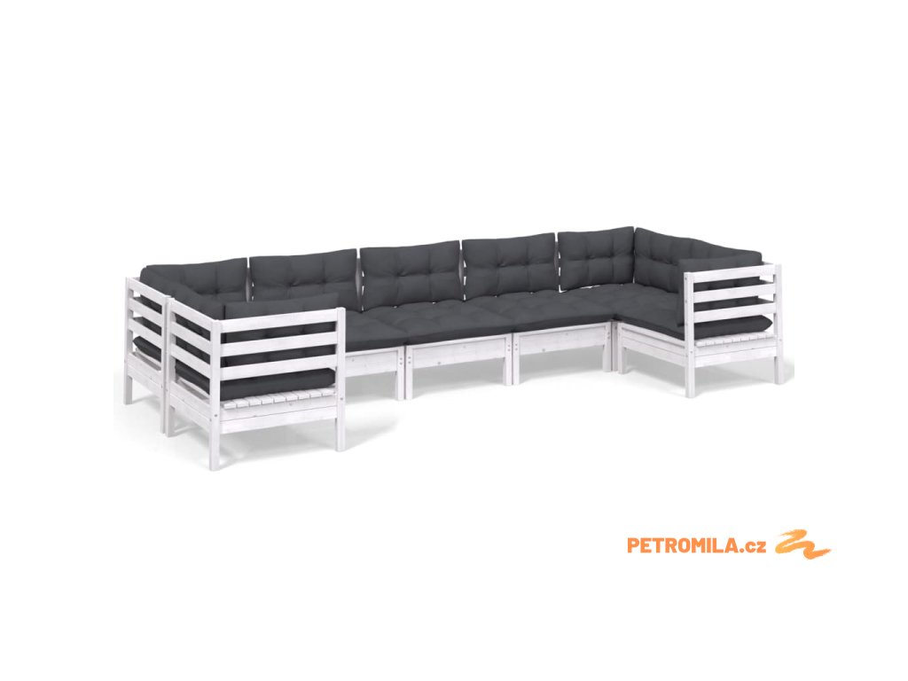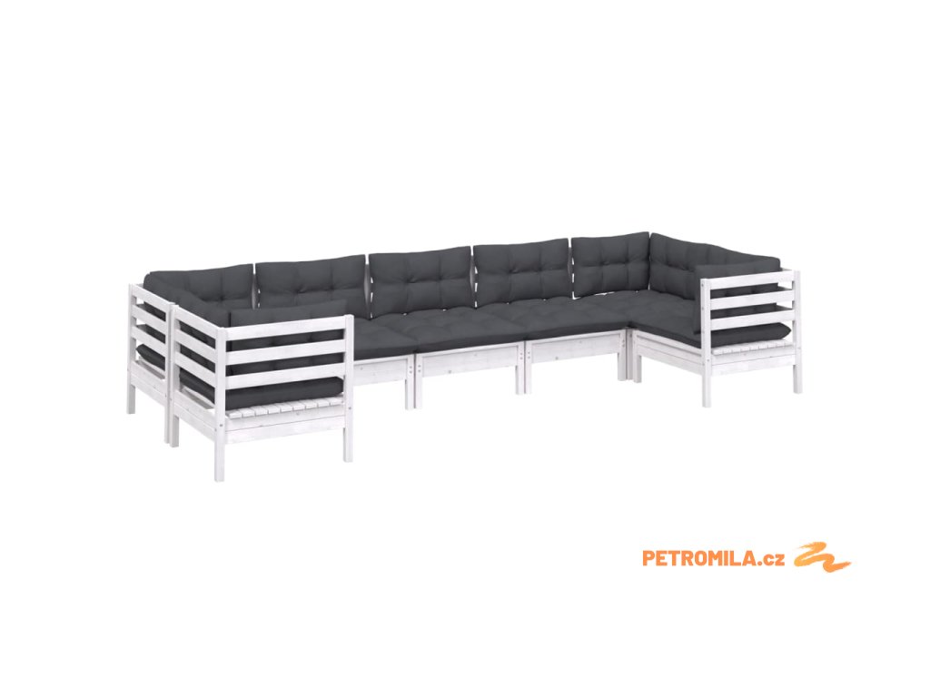 7dílná zahradní sedací souprava s poduškami bílá borovice