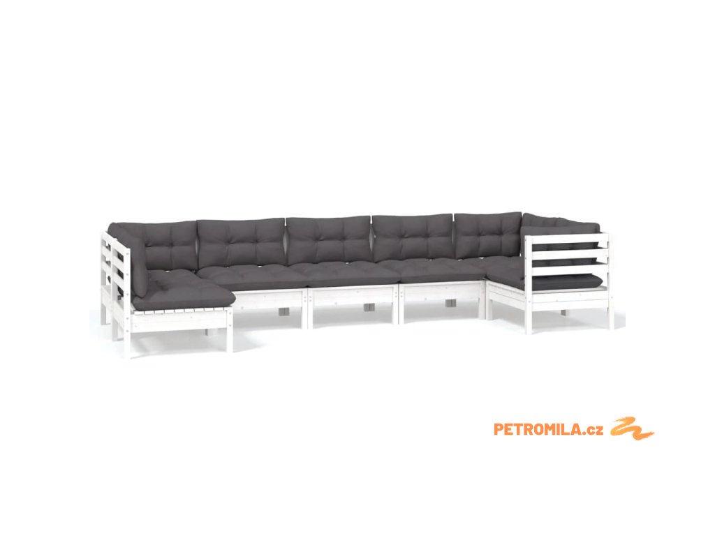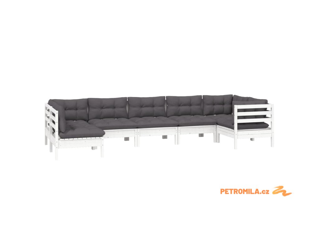 7dílná zahradní sedací souprava s poduškami bílá borovice