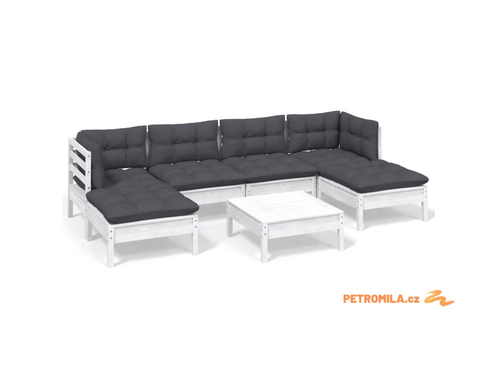 7dílná zahradní sedací souprava s poduškami bílá borovice