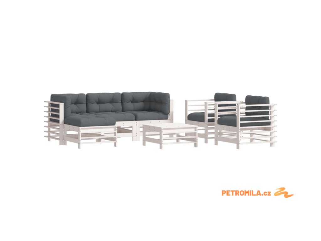 7dílná zahradní sedací souprava s poduškami bílá masivní dřevo