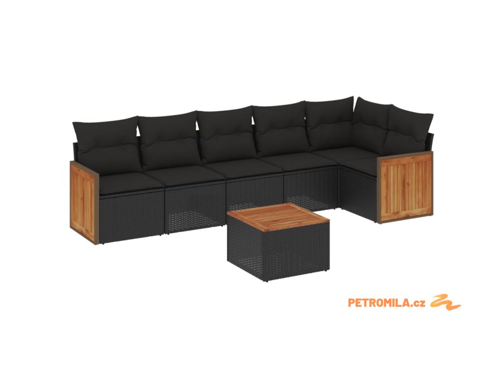 7dílná zahradní sedací souprava s poduškami černá polyratan