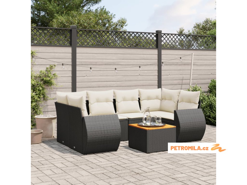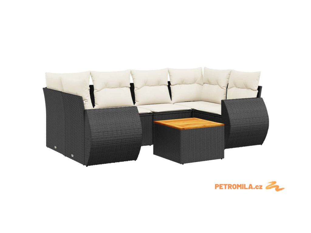 7dílná zahradní sedací souprava s poduškami černá polyratan