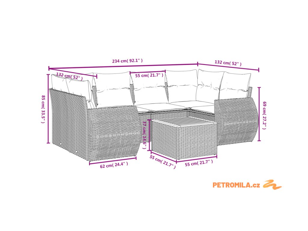 Tato zahradní sedací souprava je dokonalým doplňkem vaší zahrady, terasy nebo dvorku a poskytne vám pohodlné a příjemné místo, kde si můžete povídat s rodinou a přáteli nebo jen tak odpočívat a užívat si pobyt venku.