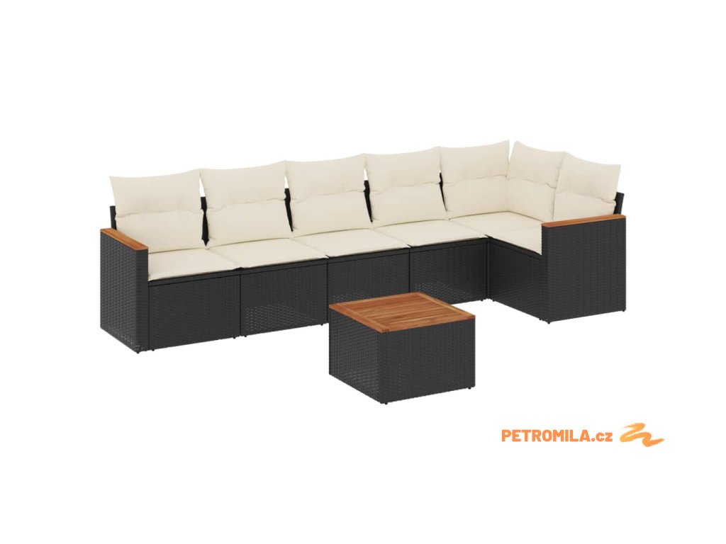 7dílná zahradní sedací souprava s poduškami černá polyratan
