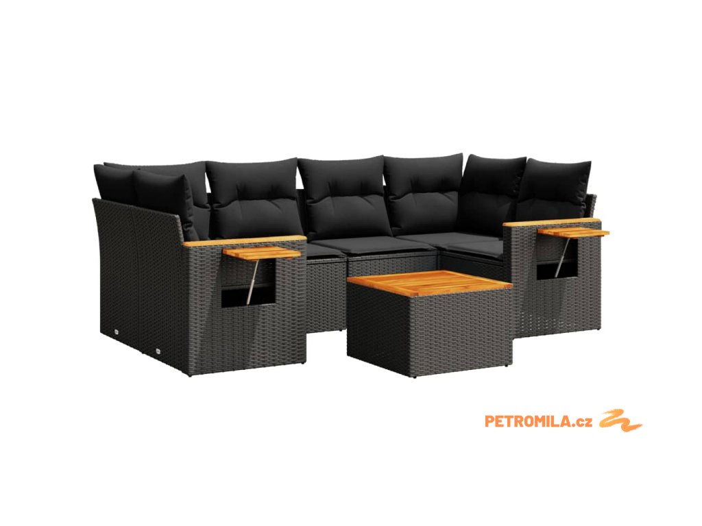7dílná zahradní sedací souprava s poduškami černá polyratan