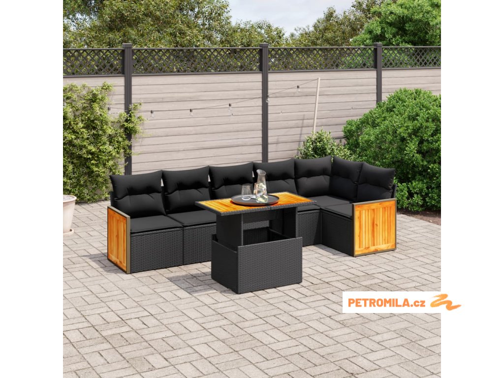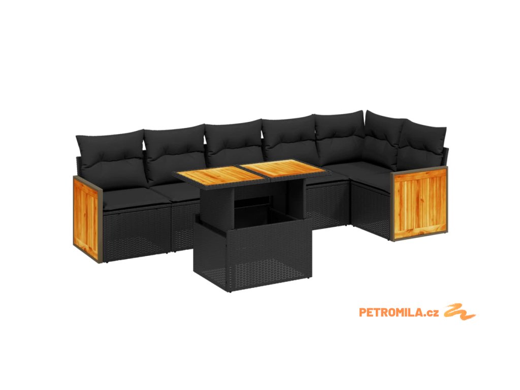 7dílná zahradní sedací souprava s poduškami černá polyratan