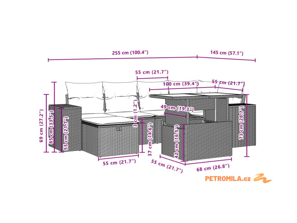 Tato zahradní sedací souprava je dokonalým doplňkem vaší zahrady, terasy nebo dvorku a poskytne vám pohodlné a příjemné místo, kde si můžete povídat s rodinou a přáteli nebo jen tak odpočívat a užívat si pobyt venku.