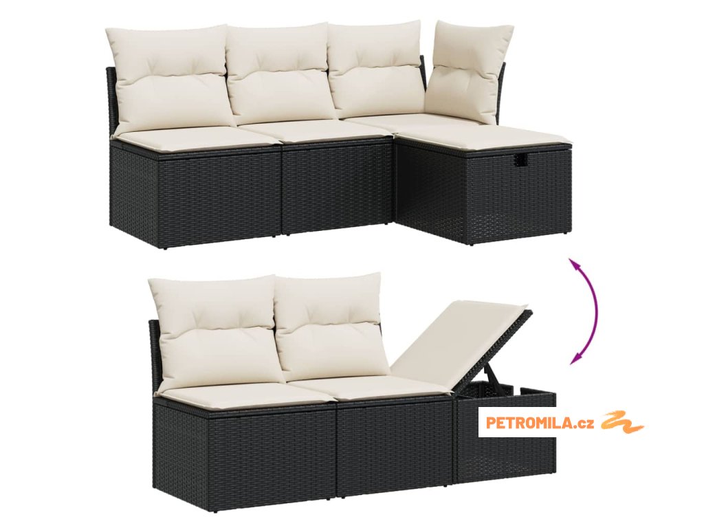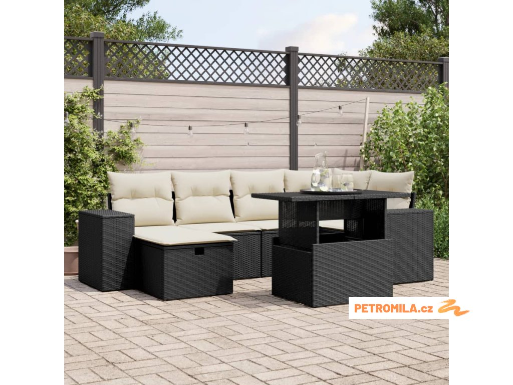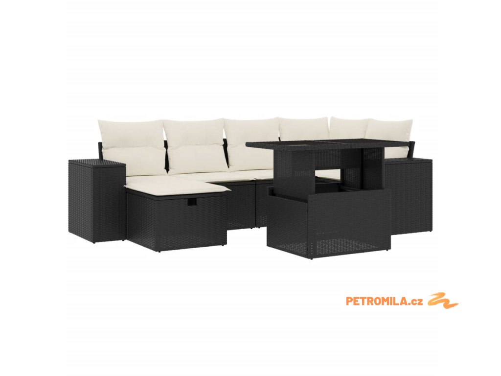 7dílná zahradní sedací souprava s poduškami černá polyratan